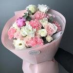 Bush rose - 3 pcs Carnation - 4 pcs eustoma white - 2 pcs