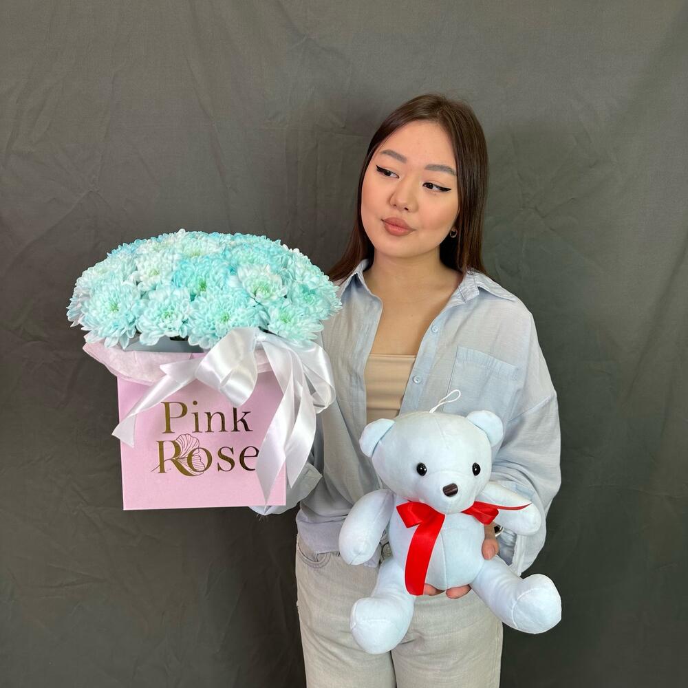 Chrysanthemum bush - 8 pcs Teddy bear - 1 pcs