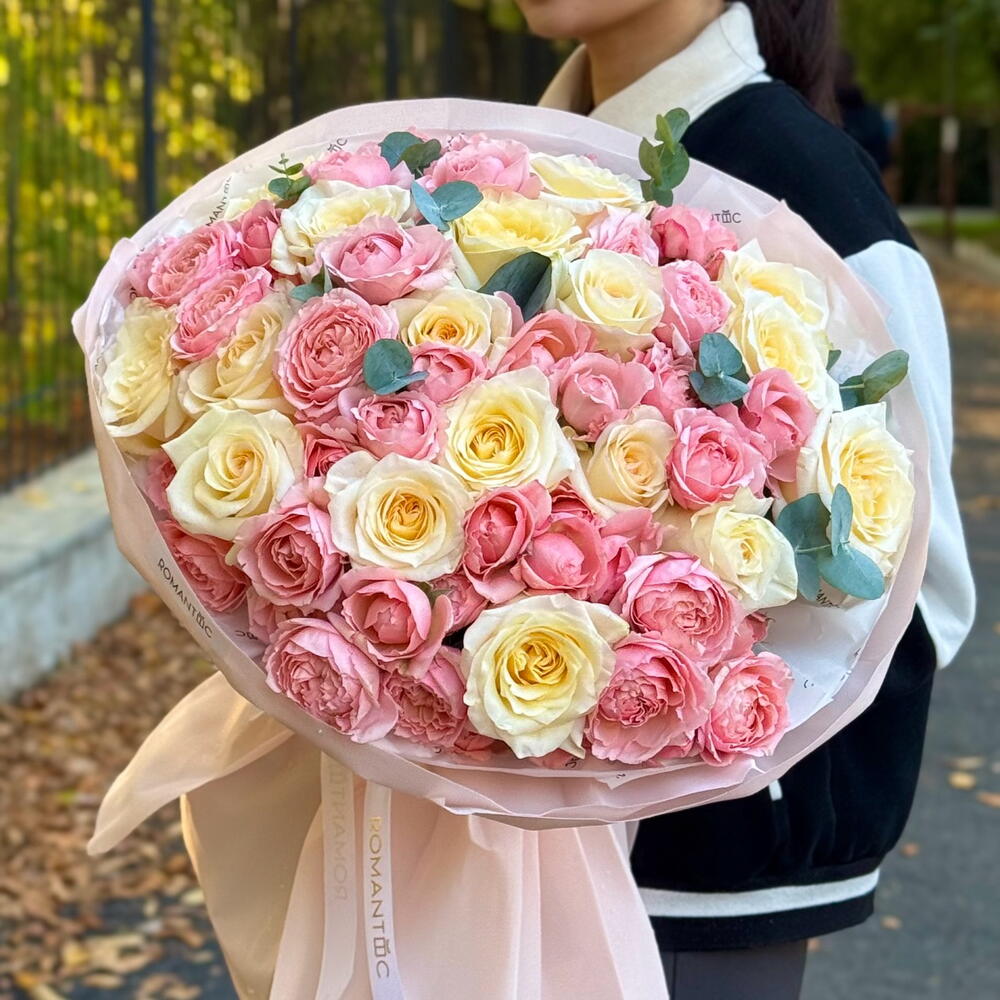 Eucalyptus - 1 pcs Rose - 15 pcs juliet rose peony - 10 pcs