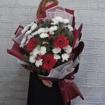 Chrysanthemum bush - 6 pcs Packaging - 1 pcs Gerbera - 3 pcs Hypericum red BUSH - 3 pcs pistachio greens - 3 pcs
