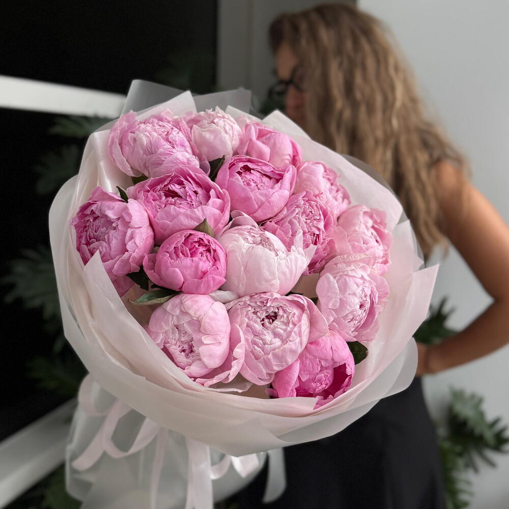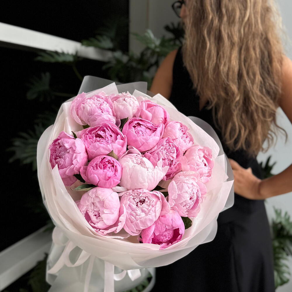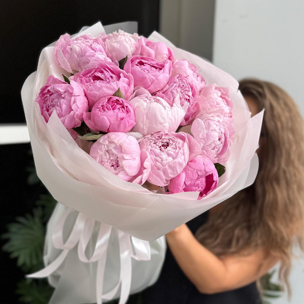 Моно букет из 15 пионов PEONY PINK