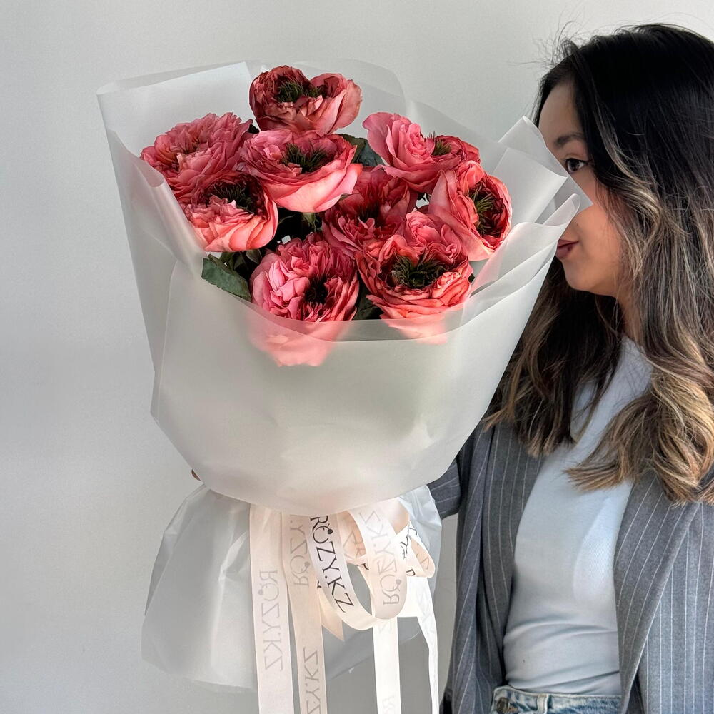 Моно букет из 9 пионовидных роз сорта «Mandarin»