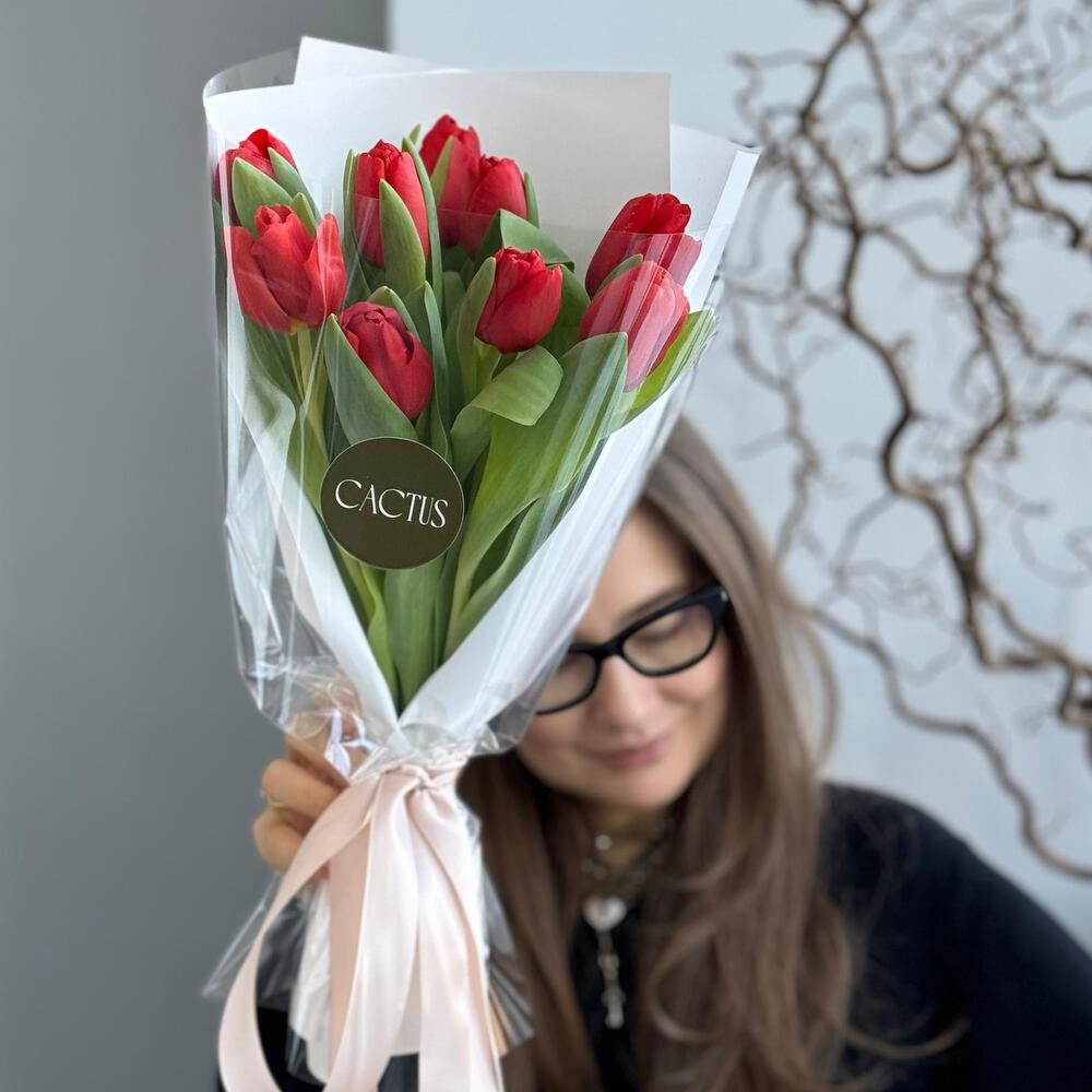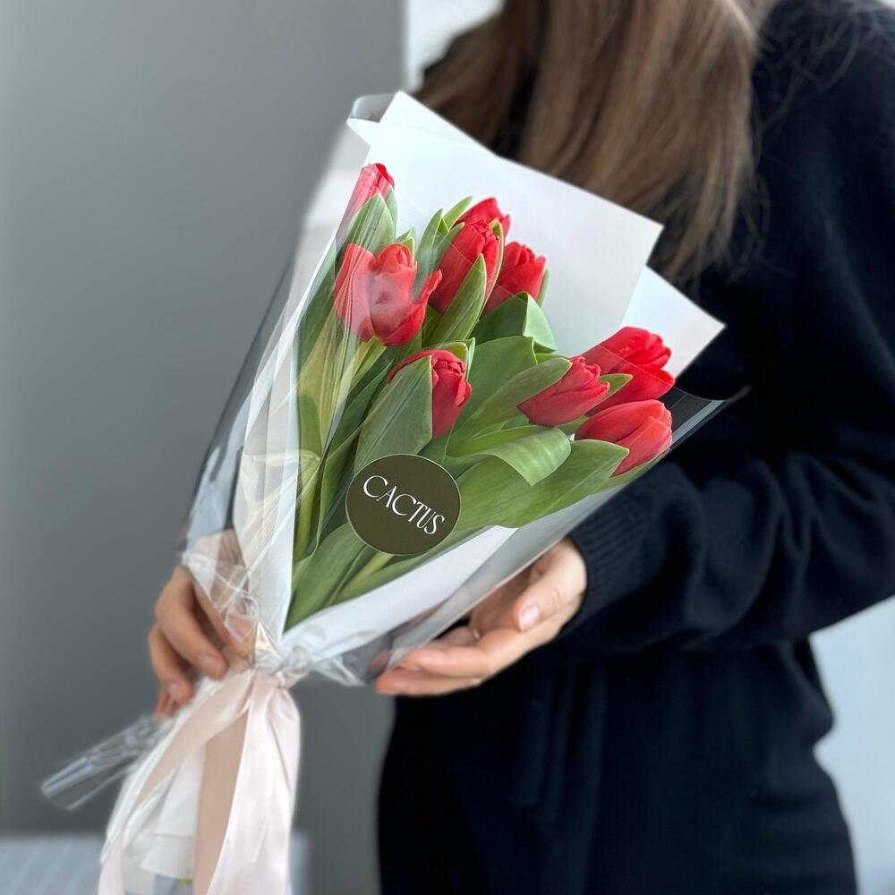 Mono bouquet of 9 tulips RED