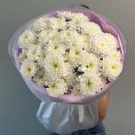 Моно букет из пышных кустовых хризантем белоснежного цвета