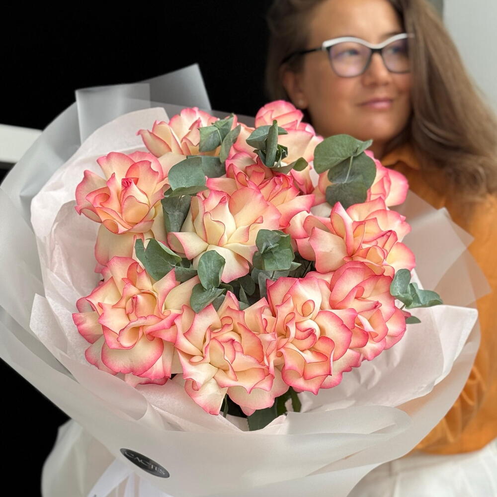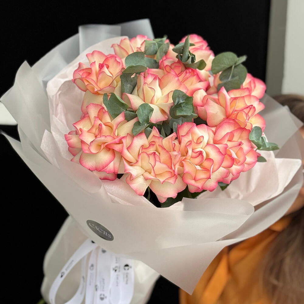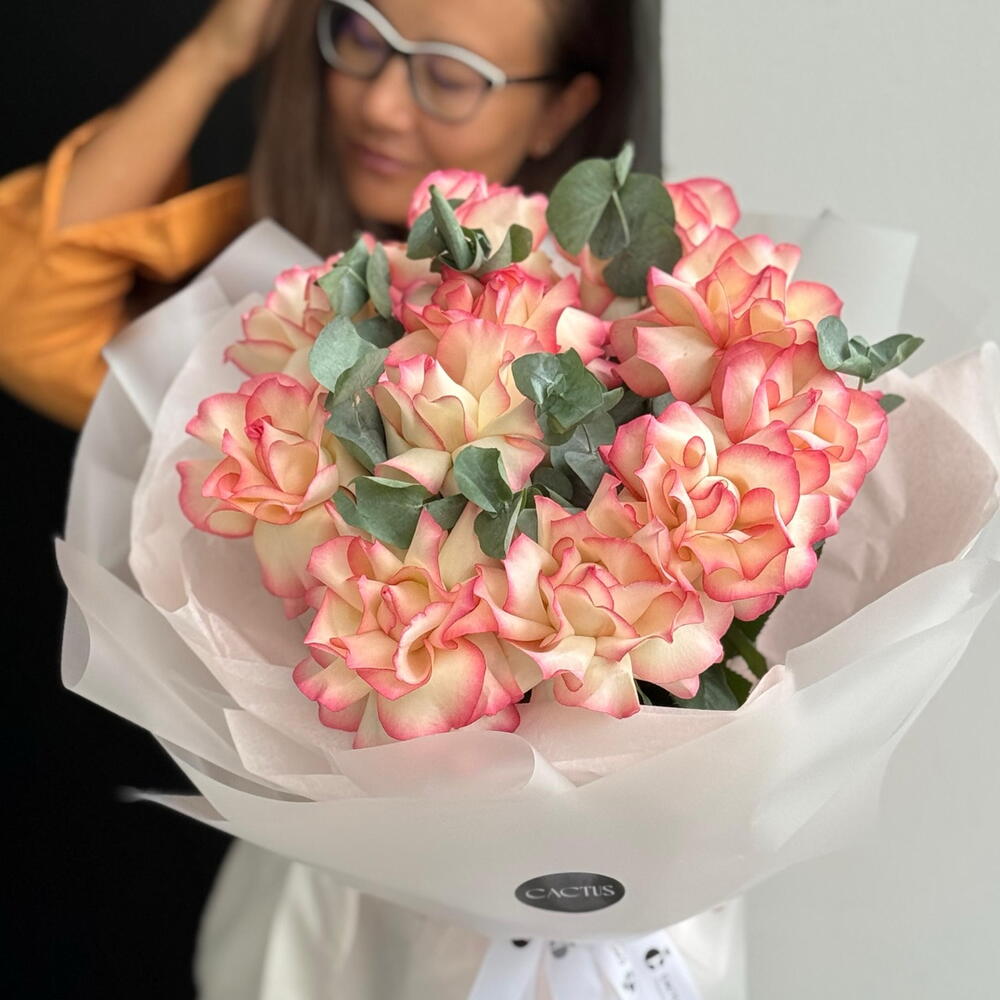 Ароматный моно-букет с французскими розами и эвкалиптом