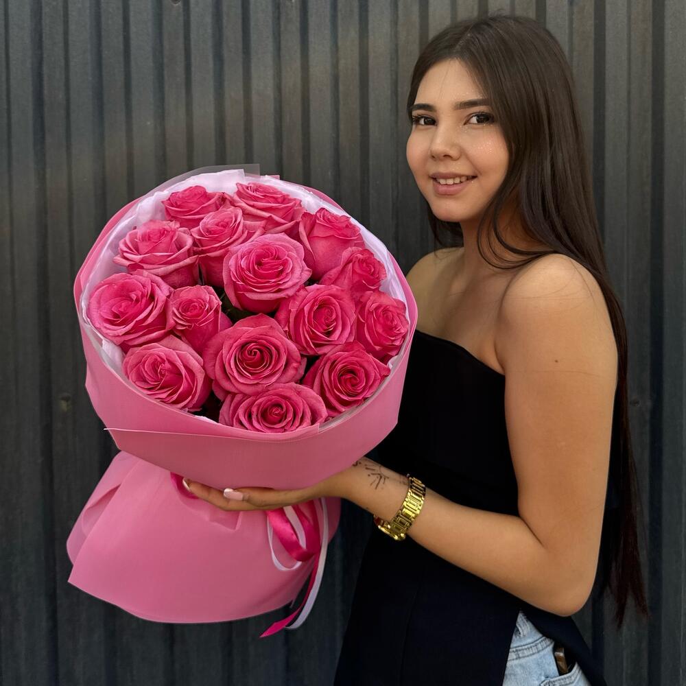 Монобукет из 15 малиновых роз