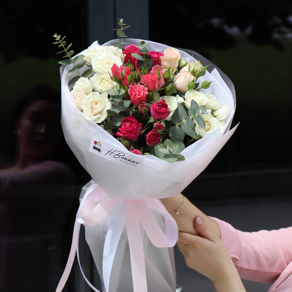 Eucalyptus - 1 pcs Bush rose - 7 pcs