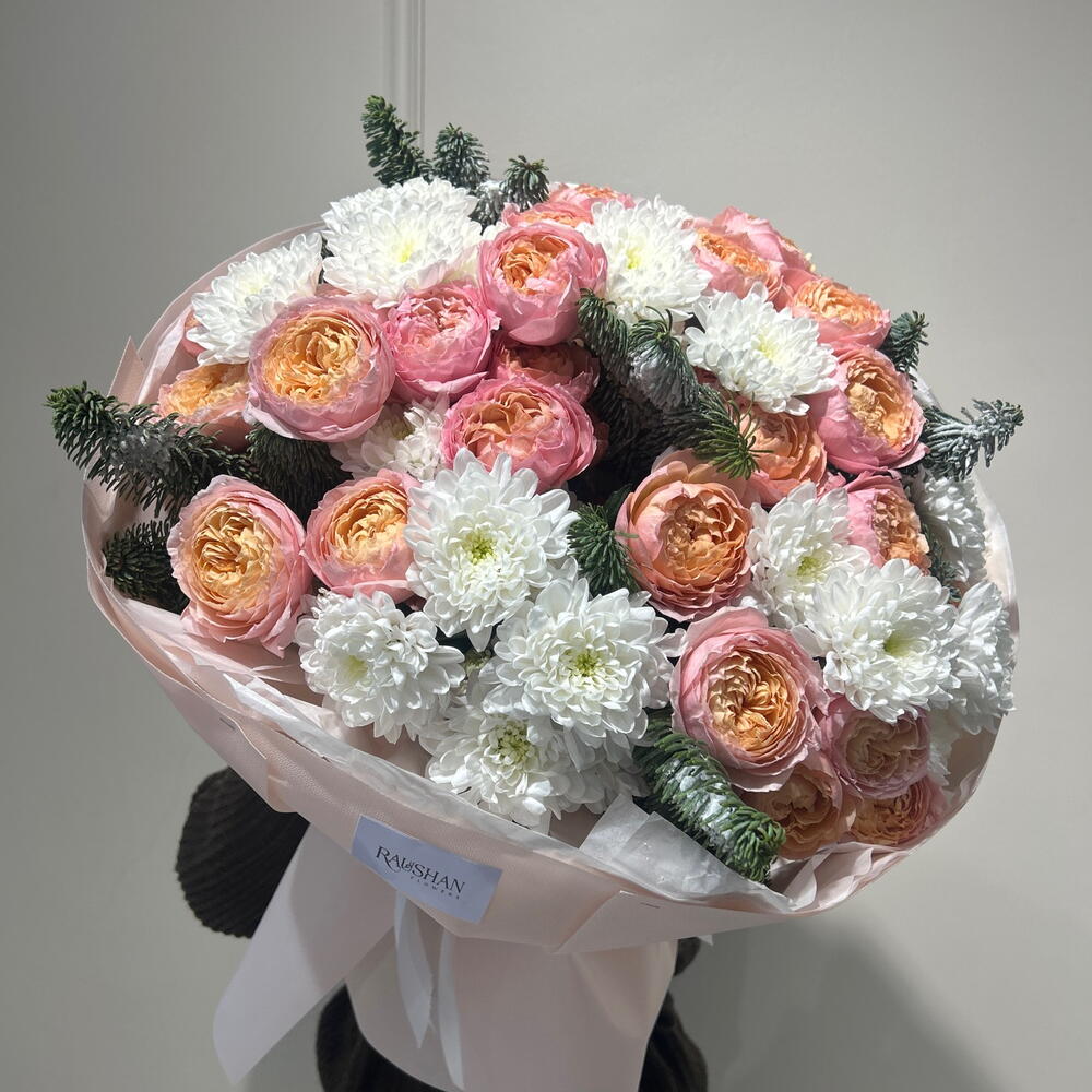 Chrysanthemum bush - 5 pcs Nobilis - 1 pcs bush rose juliet - 7 pcs