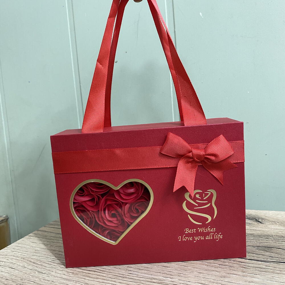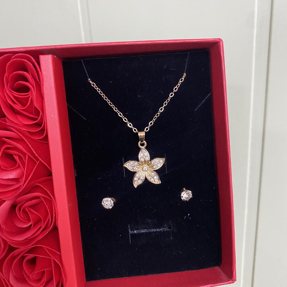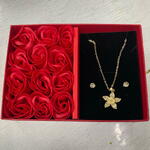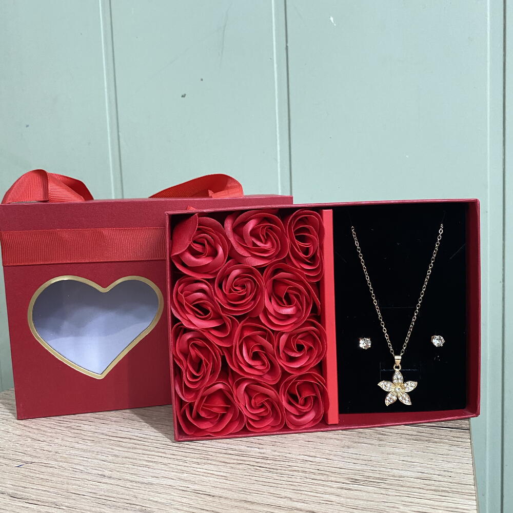 Soap roses in a box - jewelry box with jewelry chain, pendant, studs - stud earrings