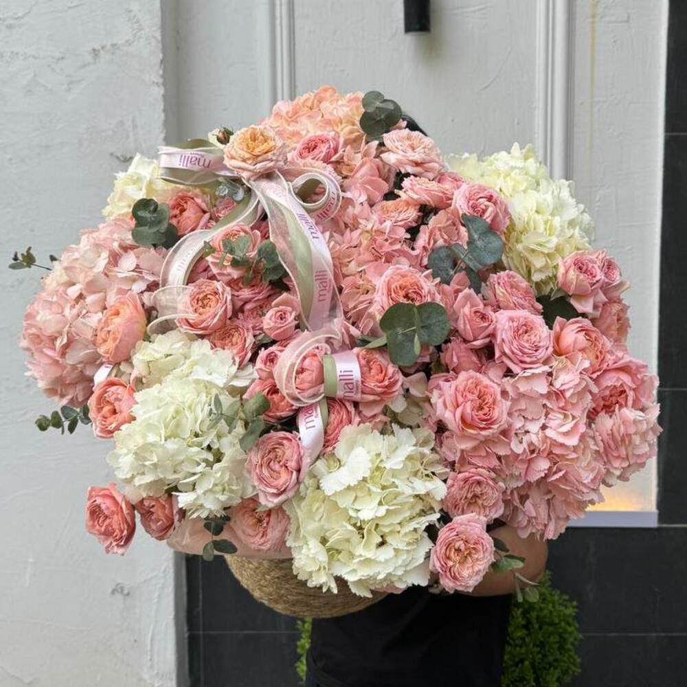 Eucalyptus - 1 pcs premium hydrangea - 11 pcs bush peony - shaped roses - 15 pcs