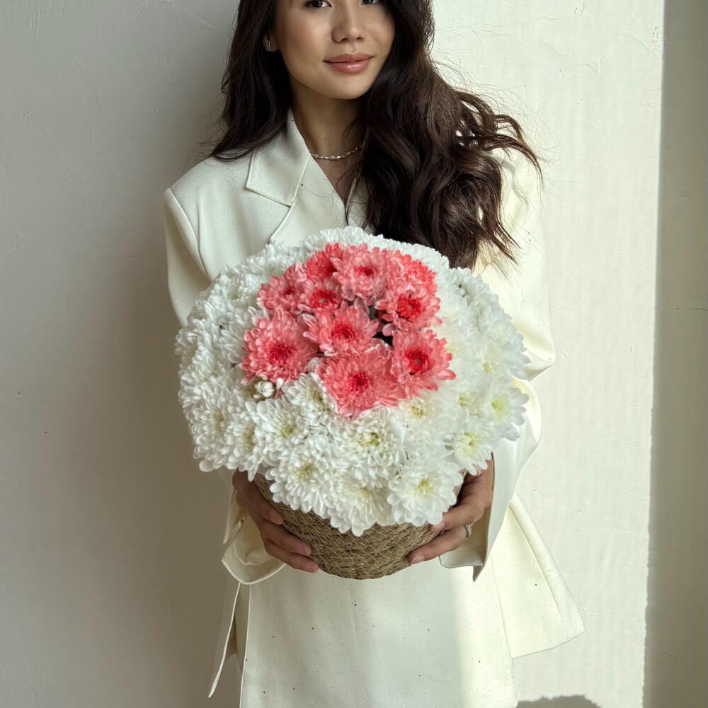 Этот изысканный набор представляет собой великолепное сочетание 23 штук белых кустовых хризантем и 7 штук нежных персиковых хризантем. Цветы аккуратно упакованы в стильную коробку, что делает их отличным подарком для любого события. Белые хризантемы символизируют чистоту и нежность, а персиковые добавляют в композицию теплую, уютную атмосферу. Этот красивый и изысканный подарок оставит незабываемые впечатления.