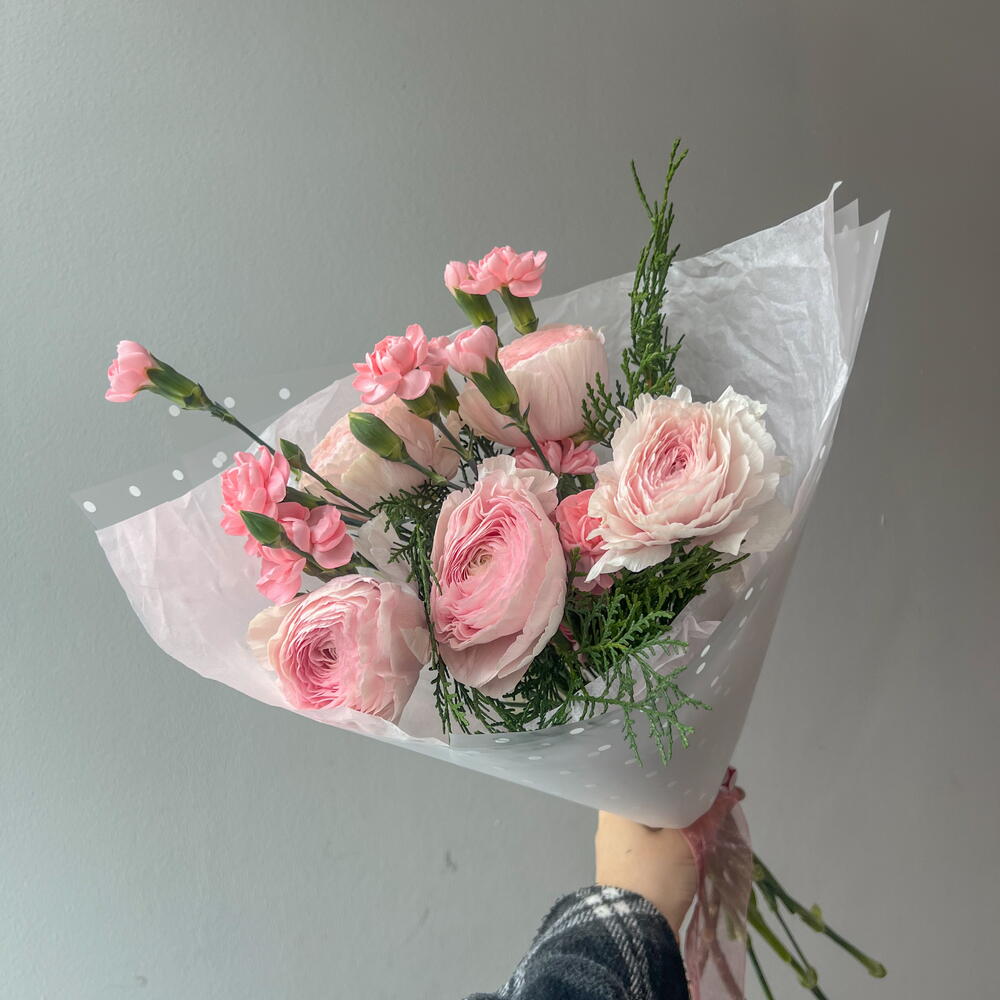 Dianthus - 3 pcs Ranunculus - 5 pcs Tuya - 2 pcs