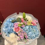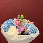 Hydrangea - 2 pcs Lily - 1 pcs Bush rose - 1 pcs Eucalyptus - 1 pcs Chrysanthemum - 2 pcs mattiola bush - 3 pcs