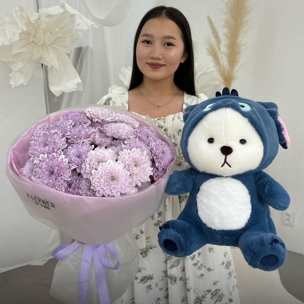 Packaging - 1 pcs Teddy Bear - 1 pcs bush chrysanthemums - 5 pcs