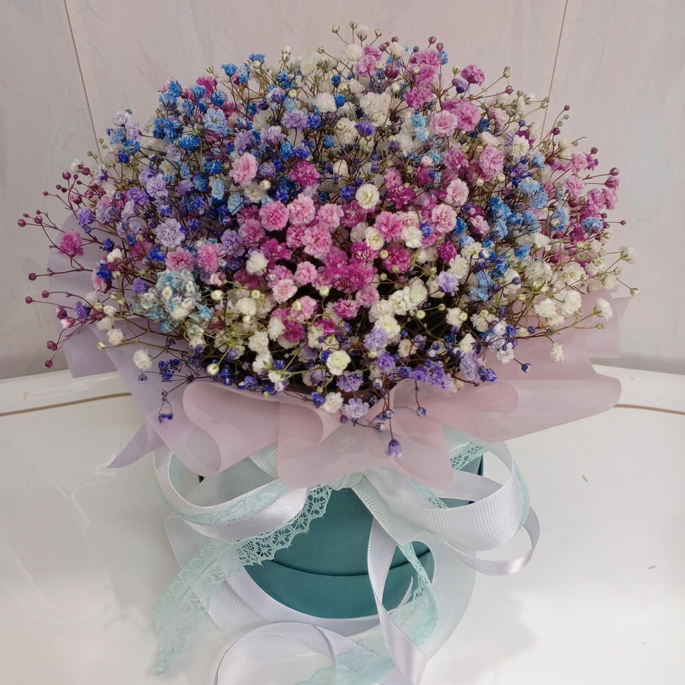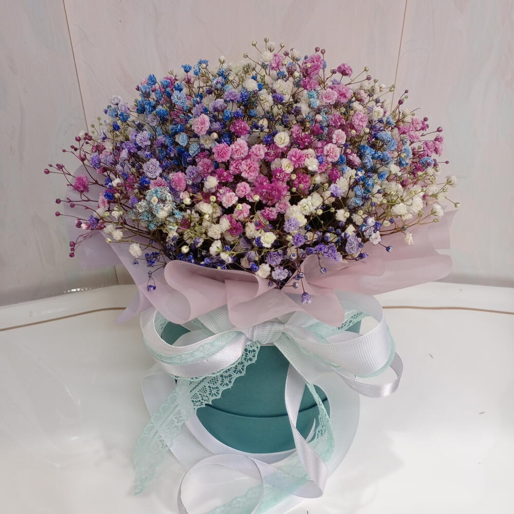 A gentle cloud of airy baby's breath , in rosy hues. please be very long! a very fashionable trend of floristry. surprised and very happy owner! waiting for your orders! Love the salon "ORCHID"