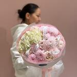 Hydrangea - 1 pcs Chrysanthemum bush - 3 pcs roses - 5 pcs