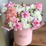 Hydrangea - 1 pcs Rose - 5 pcs Chrysanthemum - 3 pcs rose spray - 2 pcs