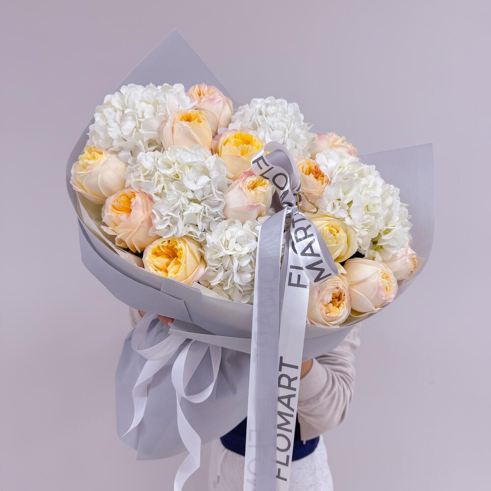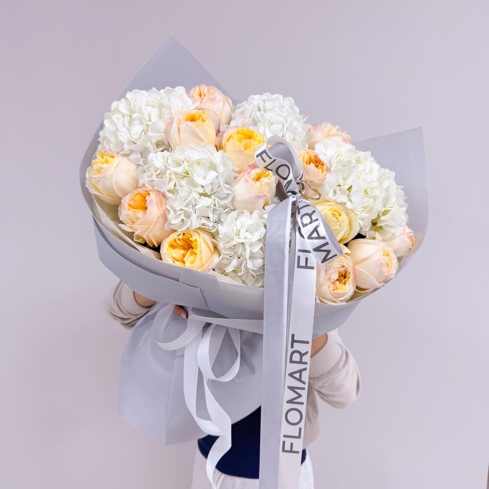 Hydrangea - 5 pcs exclusive peony roses - 13 pcs