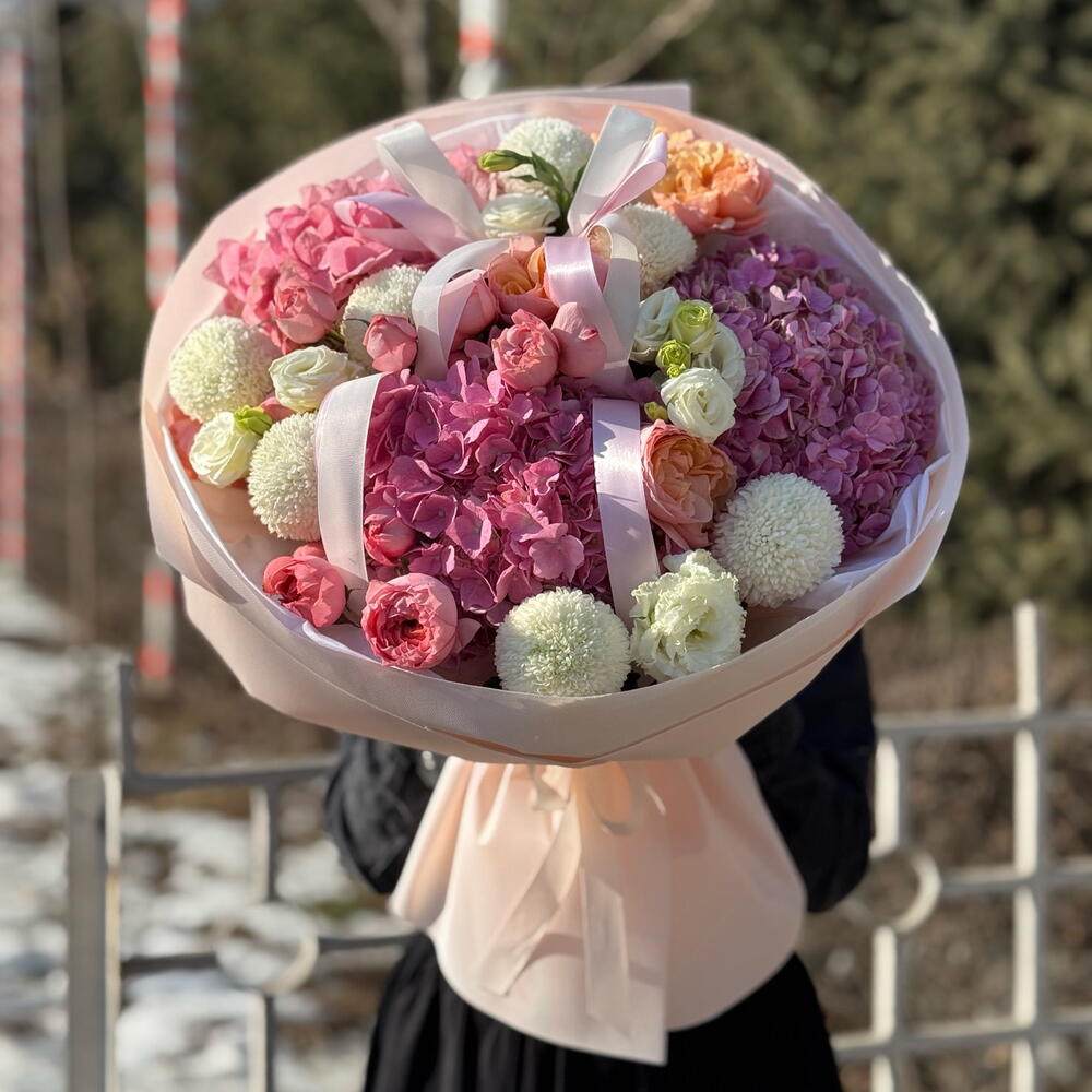 Lisianthus white - 5 pcs Marocco - 7 pcs juliet spray - 5 pcs hydrangea premium mix - 3 pcs