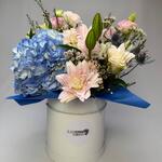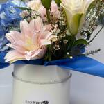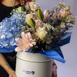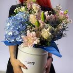 Alstroemeria - 6 pcs Waxflower - 6 pcs Hydrangea - 1 pcs Lily - 1 pcs Eringium - 1 pcs Eustoma - 2 pcs