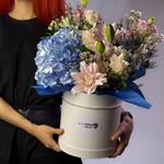 Этот любовно собранный комплект цветов в коробке объединяет в себе гармонию и утонченность. Шесть изысканных альстромерий дополняются равным количеством ваксфлауэров, вместе они создают уникальное цветовое сочетание. В центре коробки торжественно царит одна гортензия, будто королева цветов. Подчёркивает и дополняет этот цветочный ансамбль одинокая лилия, а рядом с ней с сочной зеленью эрингиум. Завершают этот волшебный букет две эустомы, добавляя в него нотки утонченной изысканности. Эта коробка - идеальный подарок для любимого человека или для выражения искренних чувств и намерений.