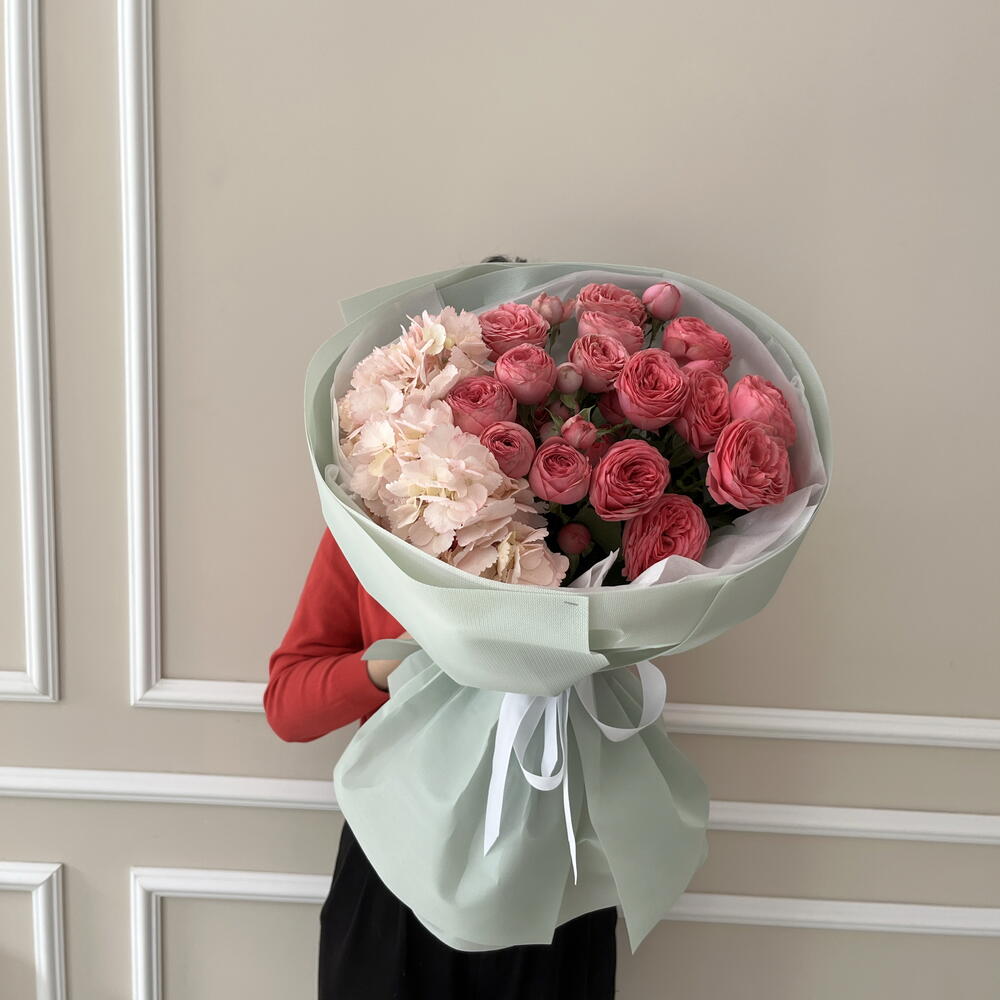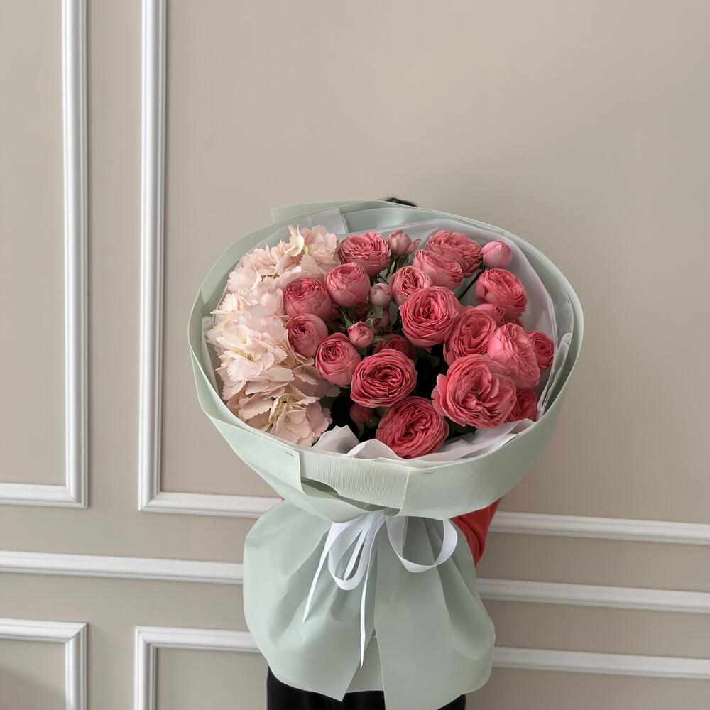 Hydrangea - 1 pcs Bush rose - 5 pcs