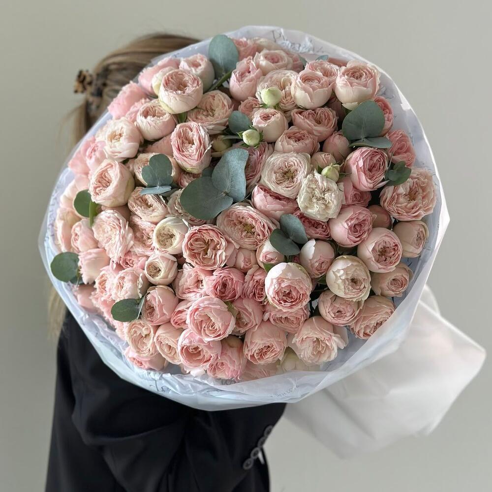 Не соответствует тому, что было на фото, от слова совсем. Как то не красиво розы стоят, все в разные стороны, не красиво. Про соответствие цвета вообще молчу