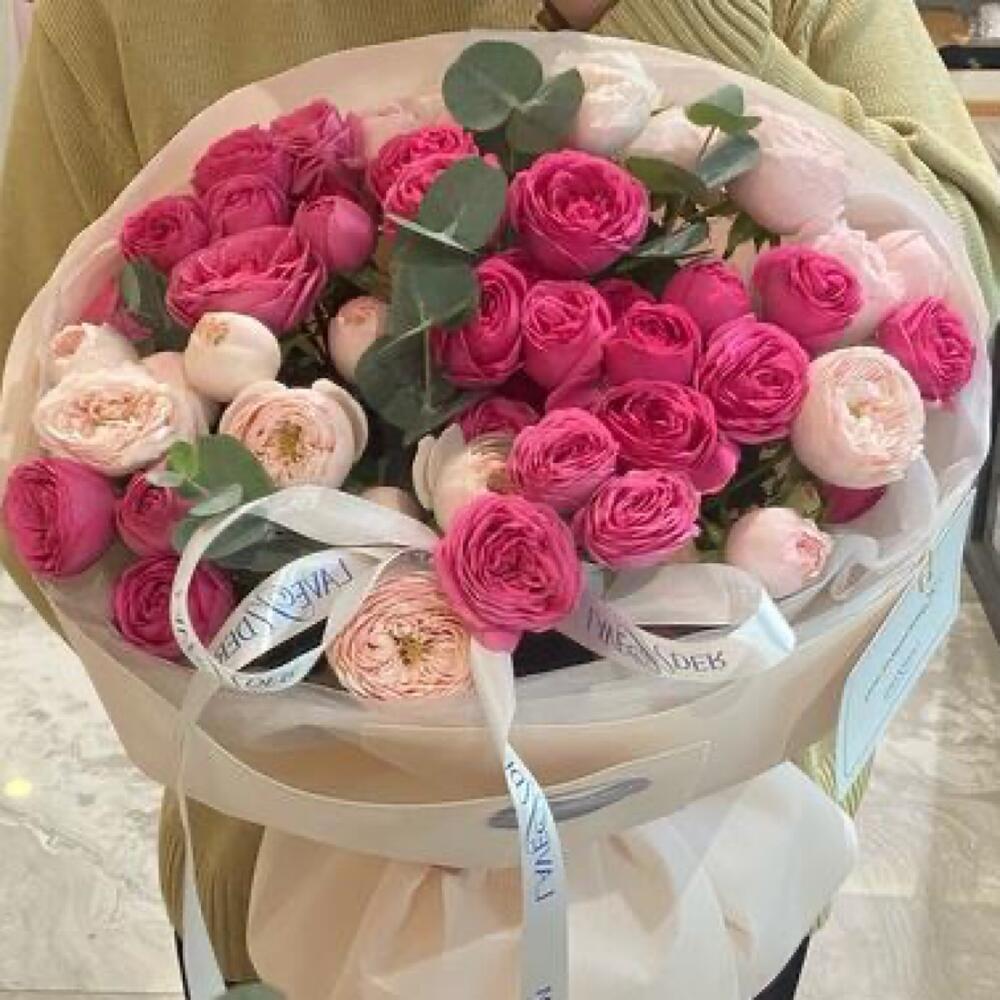 Eucalyptus - 1 pcs Peony - shaped bush rose - 15 pcs