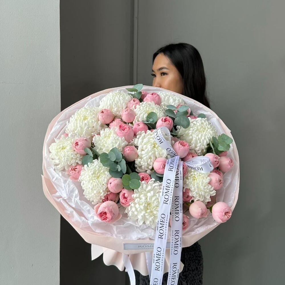 Tape - 1 pcs Eucalyptus - 1 pcs Chrysanthemum one - headed - 11 pcs Decoration - 1 pcs Spray rose - 10 pcs