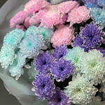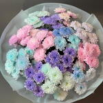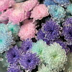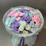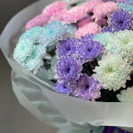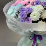 Букет составлен из пушистых и кустовых хризантем в пастельной гамме: нежно-розовые, лавандовые,бирюзовых и небесно-голубые тона. Идеально передает атмосферу нежности, тепла и изысканного вкуса.