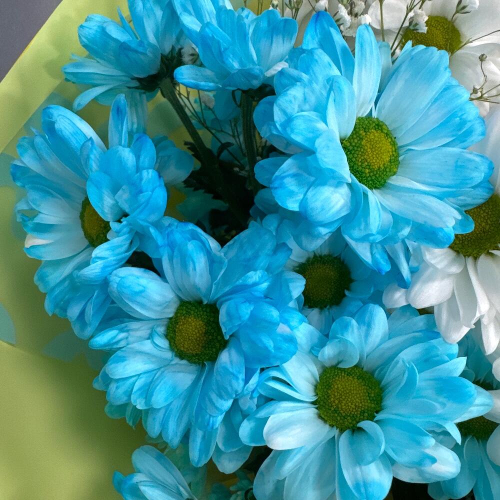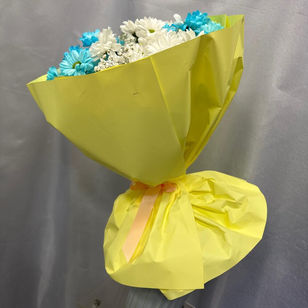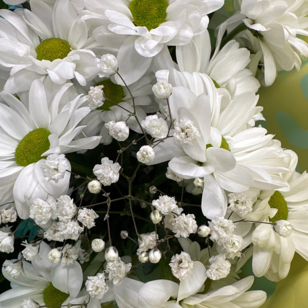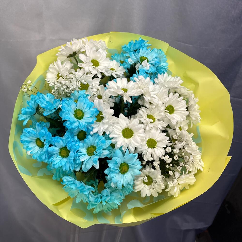 Designer packaging - 1 pcs Chrysanthemum chamomile Bush - 7 pcs gypsophila is white - 1 pcs