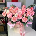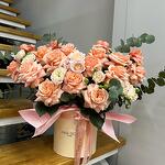 Невероятная большая композиция в коробке. Все цветы поставляются напрямую из Голландии, поэтому мы гарантируем их высокое качество и исключительную свежесть. При составлении букетов флористы используют цветы различных цветов и оттенков