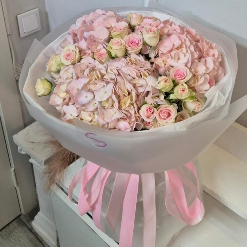 Hydrangea - 3 pcs Spray rose - 5 pcs