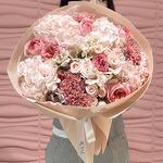 carnations - 4 pcs hydrangeas - 4 pcs peony - shaped roses - 7 pcs bush roses - 3 pcs Alstroemeria - 4 pcs
