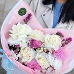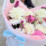 букет в нежных тонах, впишется в любой интерьер и создаст уют и тепло дома и на душе. Букет будет отличным подарком на день Рождения, Юбилей и свадьбу, как букет- комплимент коллеге, цветы на первое свидание любимой девушке, букет маме, бабушке или любимой жене, папе, друзьям или любимому мужчине