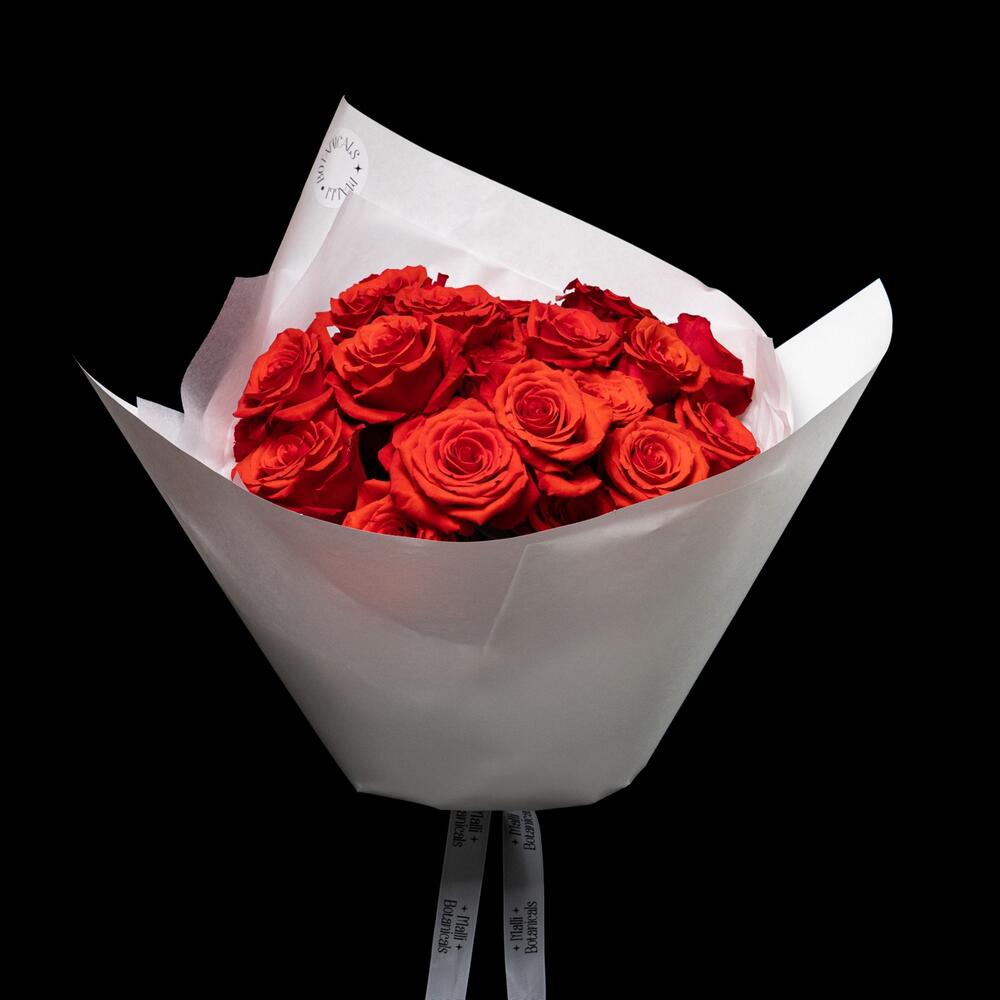 Красные розы сорта Nina — это яркие и элегантные цветы, которые привлекают внимание своей красотой. Они имеют насыщенный красный цвет, который символизирует любовь, страсть и восхищение. Оформлен в фирменную упаковку Malli Botanicals с возможностью дополнить открыткой. На фото букет в размере S, 25шт