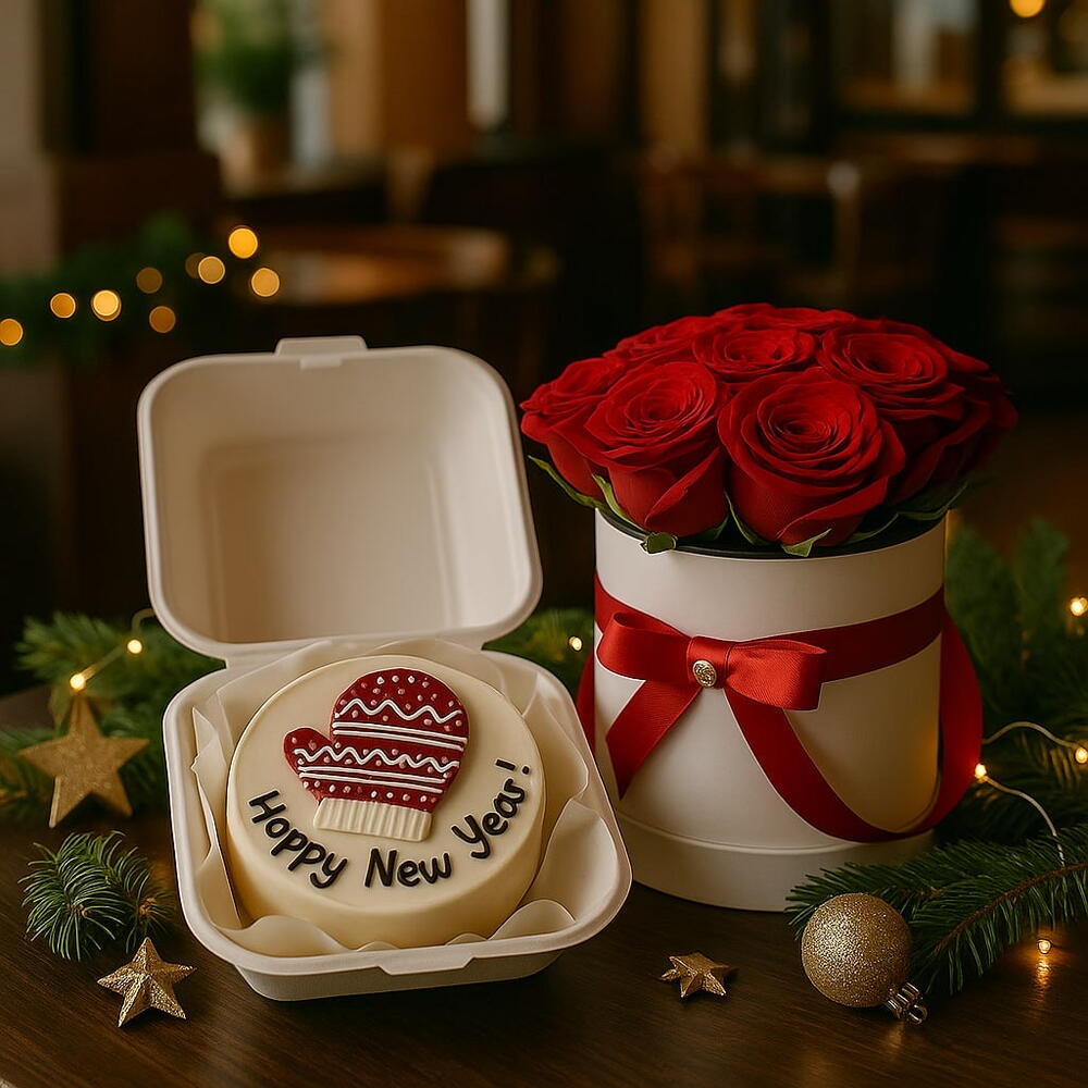 Розы в коробке и бенто торт Новогодний бенто тортик торт new year медовик