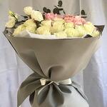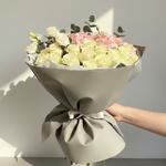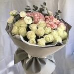 Ecuador Rose - 17 pcs Designer packaging - 1 pcs Pink hydrangea - 2 pcs eustoma white - 2 pcs