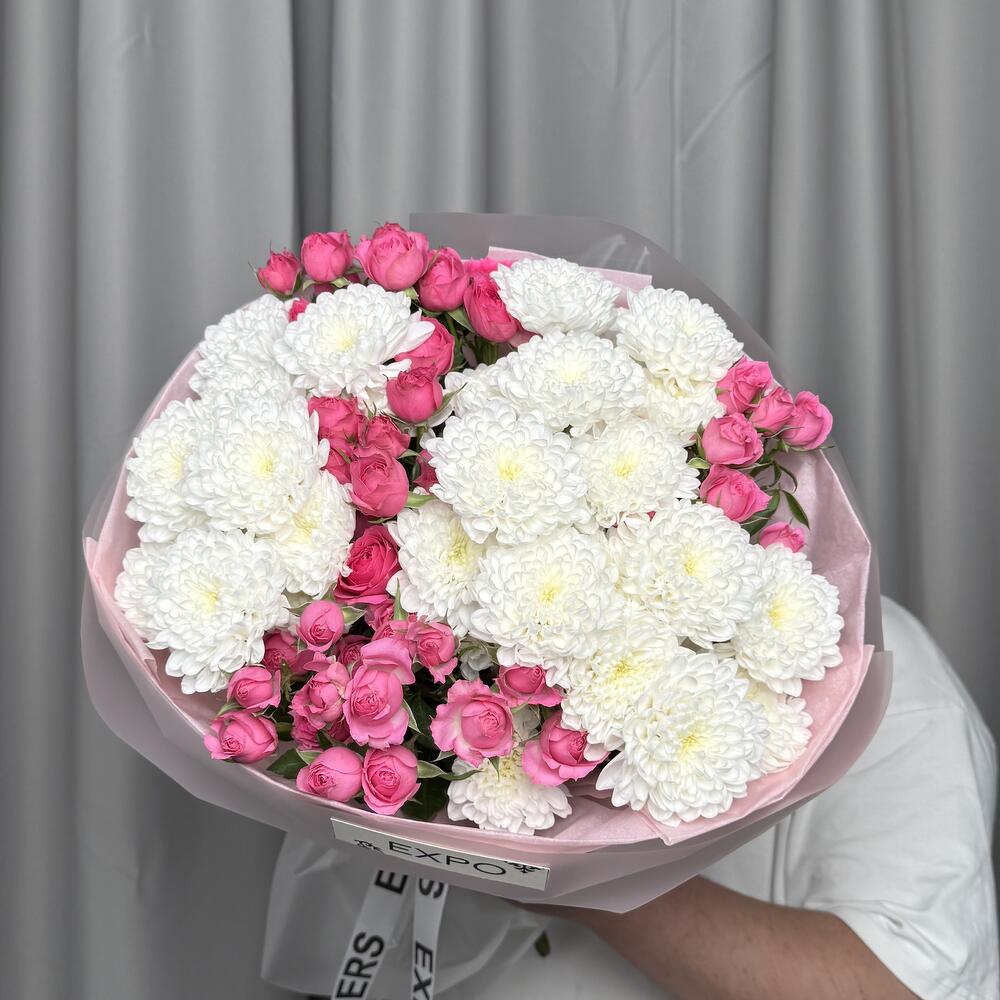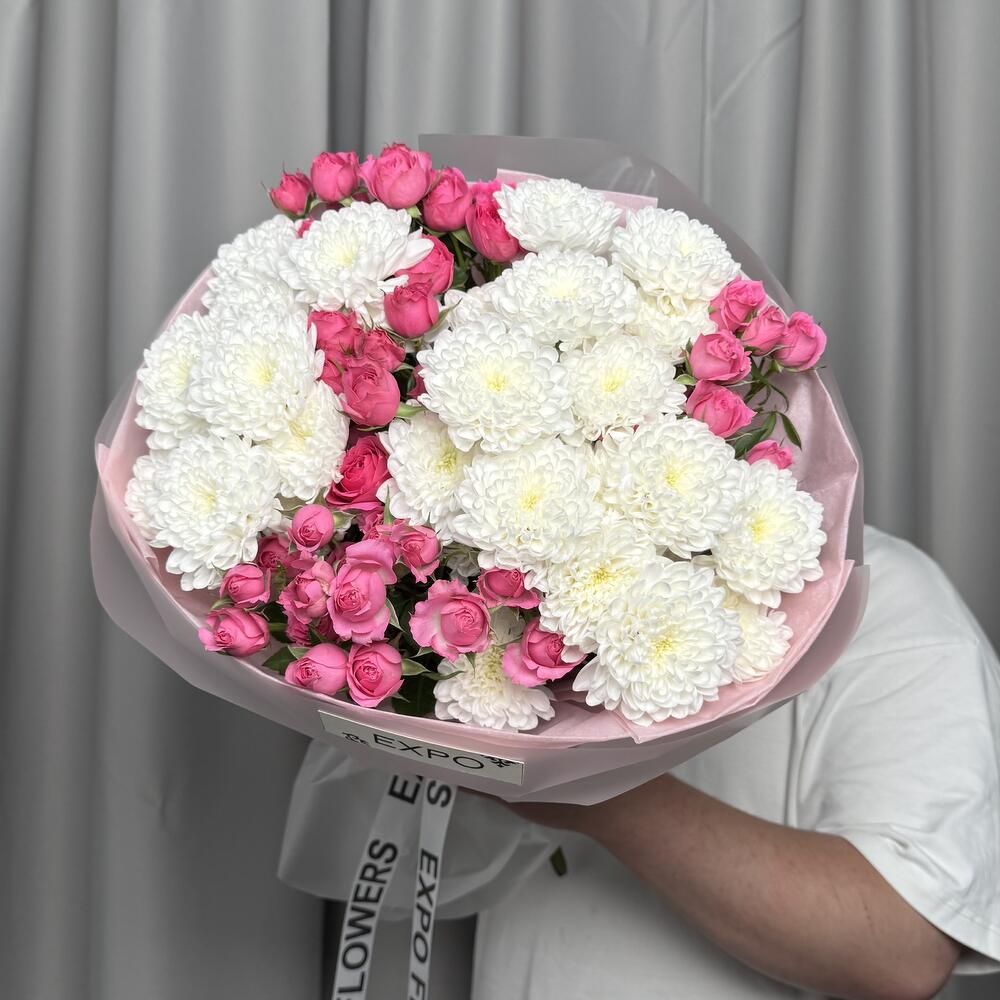 Изысканный букет с характером — для тех, кто ценит красоту в деталях. Объединяя нежность воздушных хризантем и насыщенную страсть малиновых кустовых роз, этот букет словно создан для того, чтобы выразить чувства без слов. Он подойдёт и для признания, и для поздравления, и просто чтобы напомнить: «Ты — особенная»
