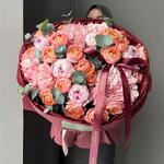 Hydrangea - 3 pcs Tape - 1 pcs Peony - 5 pcs Eucalyptus - 1 pcs Decoration - 1 pcs Spray rose - 5 pcs