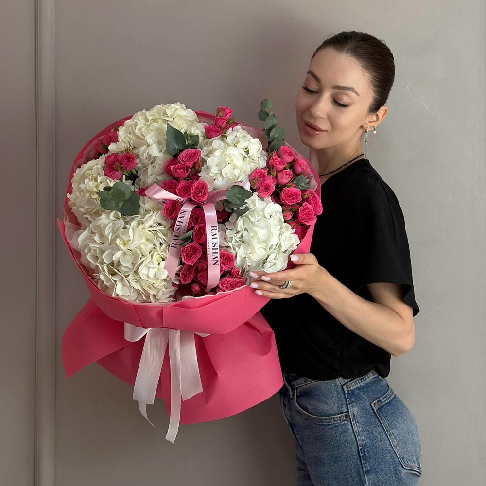 Hydrangea - 5 pcs Bush rose - 10 pcs Eucalyptus Mix - 2 pcs