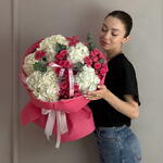 Шикарный, нежный букет с отличным запахом! Флорист со вкусом креативно оформил букет. Жена была в восторге! Букет полностью соответствовал фотке заказа. Спасибо большое!