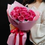 Stylish bouquet of 15 crimson roses