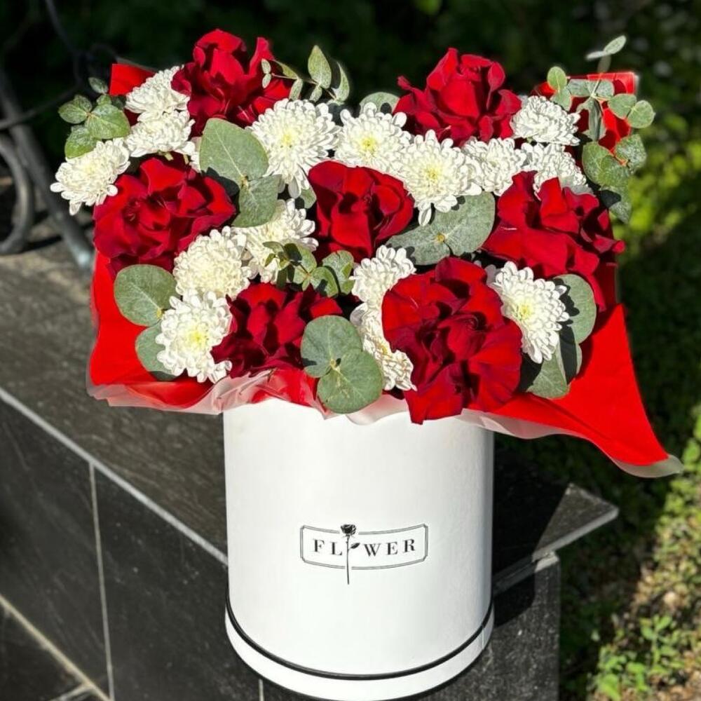 Chrysanthemum bush - 3 pcs Eucalyptus - 4 pcs Ecuador Rose - 7 pcs