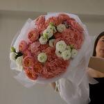 Hydrangea - 4 pcs Aquabox - 1 pcs A postcard with your wishes - 1 pcs eustoma white - 5 pcs juliet rose peony - 5 pcs vitamins for flowers (crystal) - 1 pcs