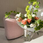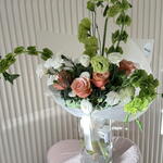 Ornithogalum - 1 pcs Molucella - 3 pcs eustoma white - 3 pcs Rosa kahala - 4 pcs Eustoma green - 2 pcs spray carnation - 2 pcs carrying for flowers - 1 pcs large green hydrangea - 1 pcs