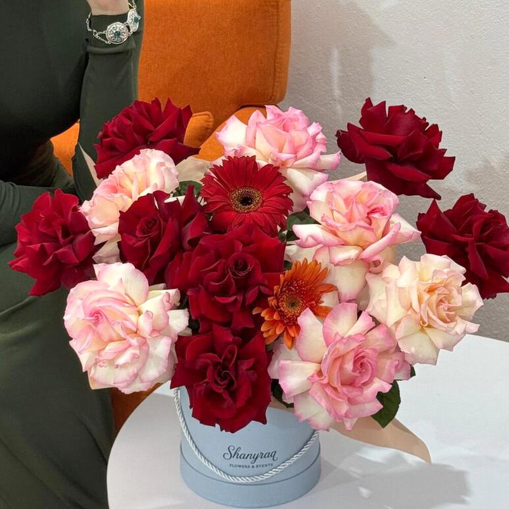 Восхитительный микс красивейших цветов, упакованных в стильную коробку для особого подарка. Нежная композиция объединяет в себе одну красную и одну рыжую герберу, семь светящихся красных роз и девять нежно-розовых роз, создавая визуальный фейерверк цвета и роскоши. Идеальный выбор для того, чтобы показать свои чувства и сделать день близкого человека незабываемым.