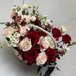 Этот великолепный композиционный ансамбль из цветов в корзине подарит незабываемые впечатления. Шикарную композицию из 7 восхитительных ваксфлауэров, 1 пышной гортензии, 13 роскошных роз и 4 изящных эустом определенно станет центром любого торжества. Эта роскошная корзина цветов - идеальное дополнение к любому подарку и замечательный способ выразить свои чувства.