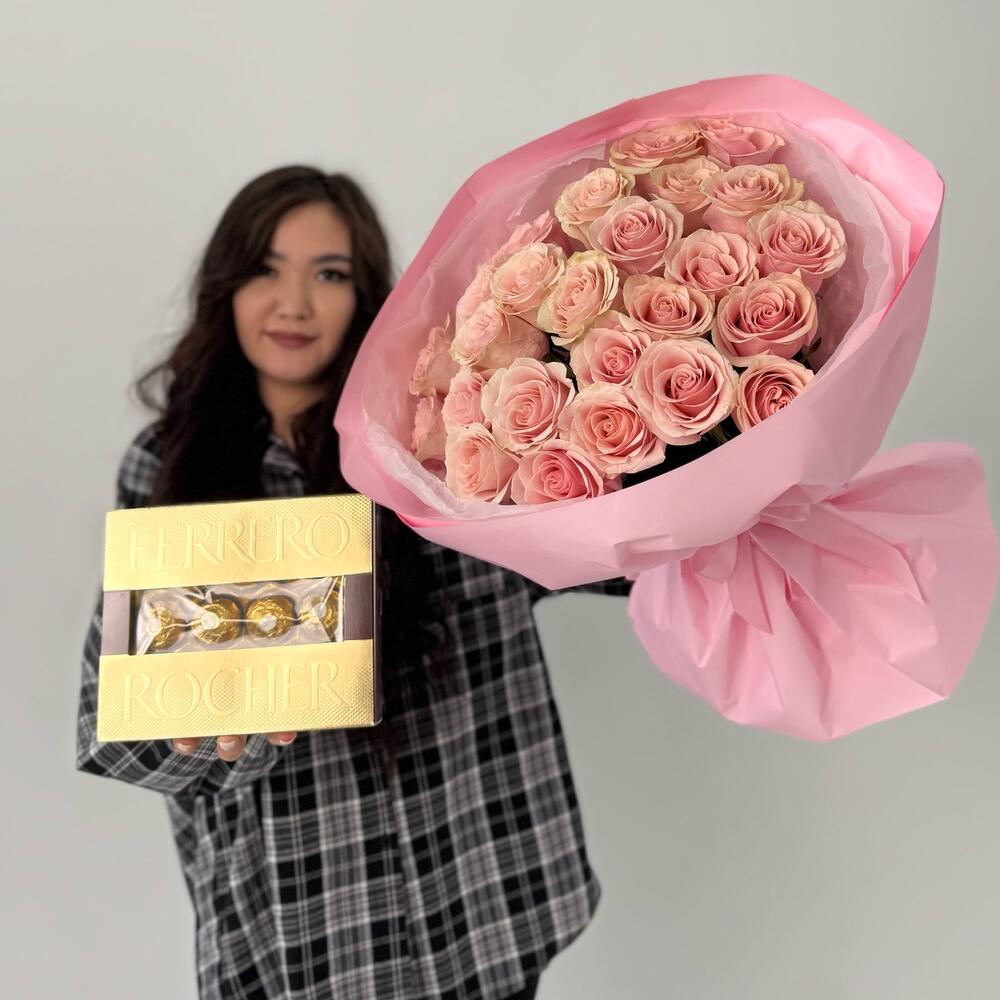 Вкусное комбо “букет из 25 роз+Ferrero”