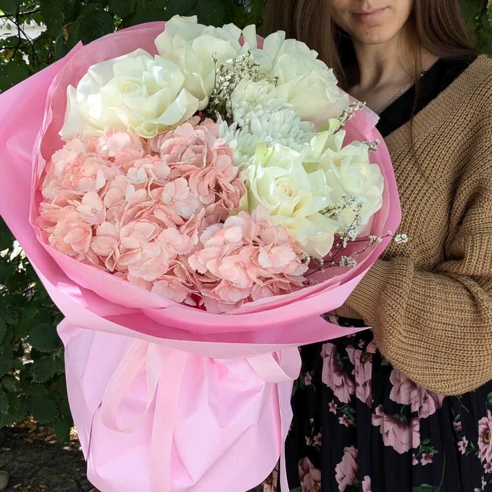 "Whipped cream" - Delicate bouquet with hydrangeas and roses